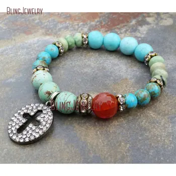 Special Offer Gun Metal Cutout Cross Charm Bracelet Turquoises Howlite Beads Bracelets BM20498 Discount 20% Today!