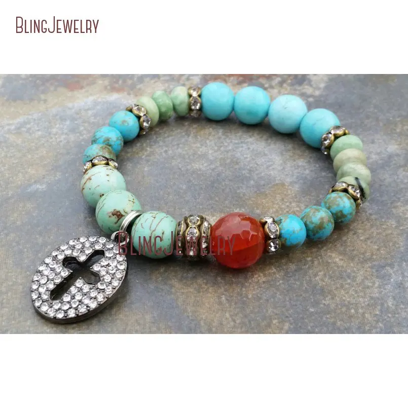 Best . (20% Off) Buy Gun Metal Cutout Cross Charm Bracelet Turquoises Howlite Beads Bracelets BM20498 Price Online.